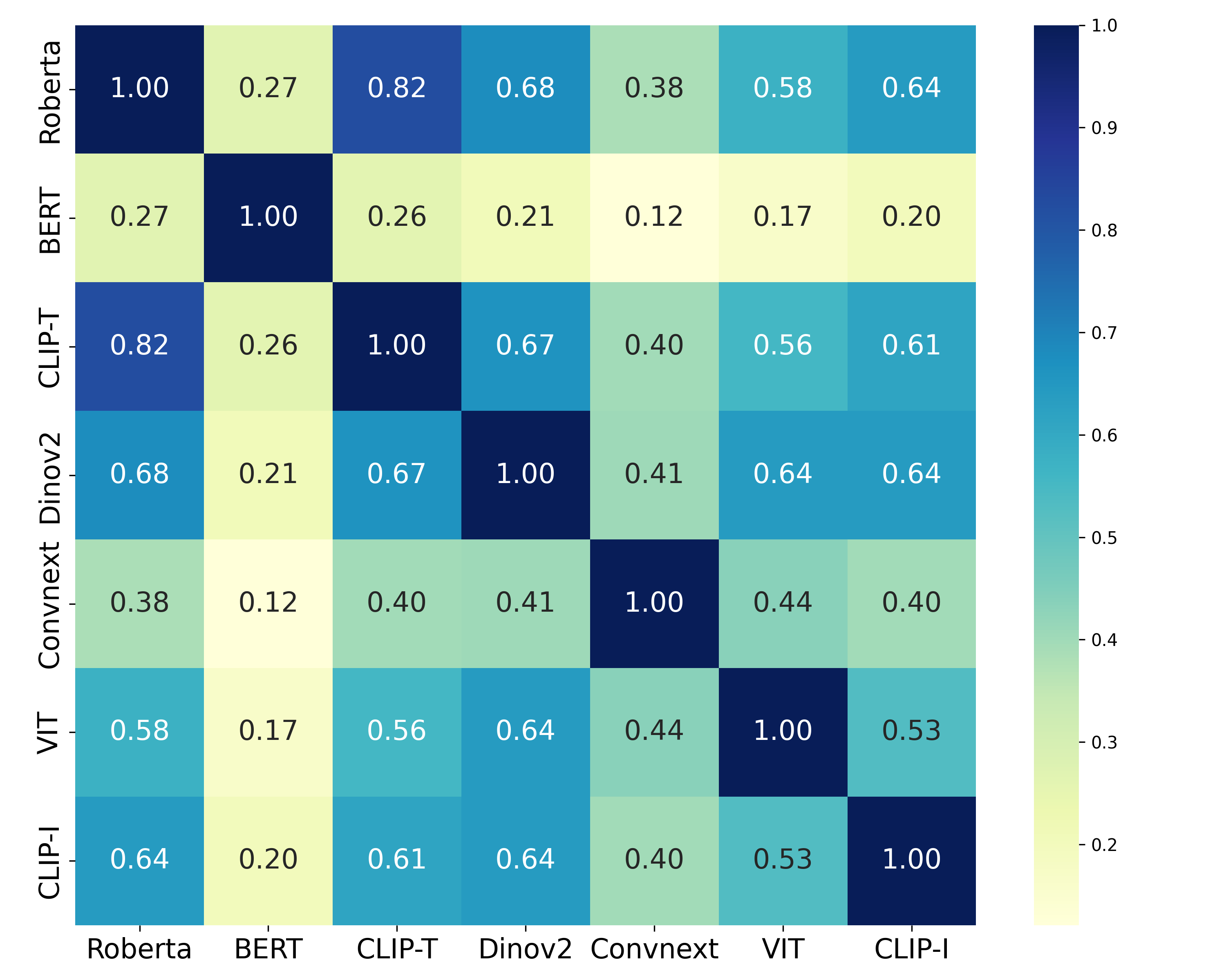 Figure 1. CKA scores between different models computed on MS-COCO and NOCAPS datasets.